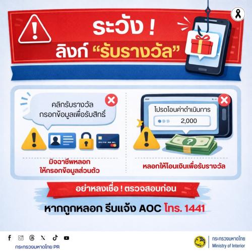 ระวัง ลิงก์รับรางวัลปลอม